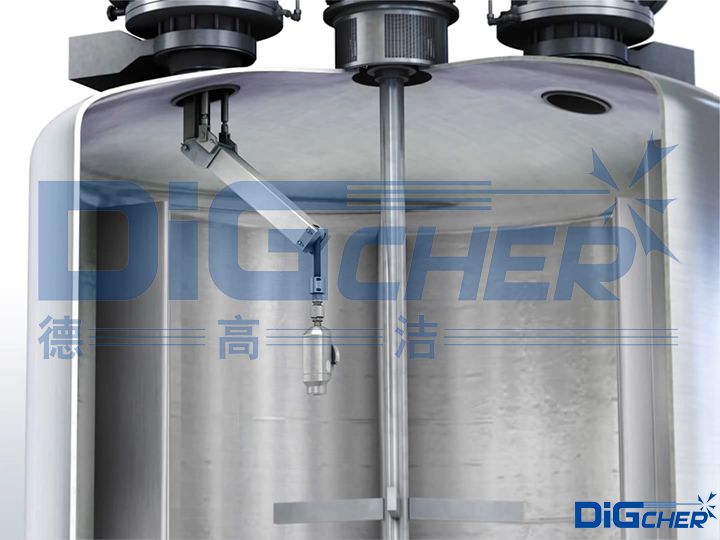 德高潔反應(yīng)釜清洗系統(tǒng)自動化程度高,清洗一臺反應(yīng)釜大約只需要15 min;由于三維旋轉(zhuǎn)噴頭與伸縮桿的復(fù)合運動,高壓水射流可以覆蓋反應(yīng)釜內(nèi)任何位置,完成反應(yīng)釜的360°無死角清洗。