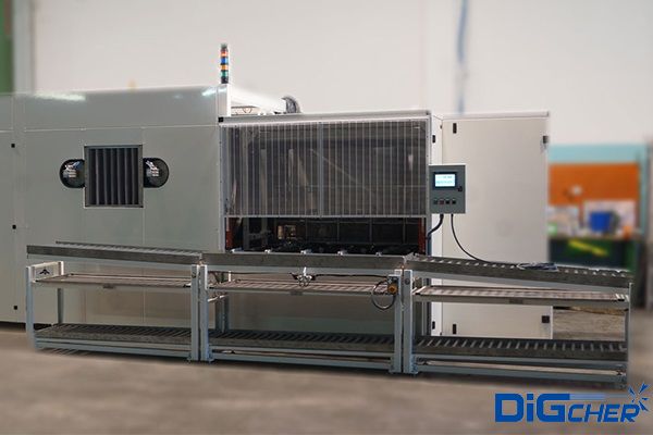 PT-6 SSDA 大軸承通過式清洗線采用動力輥子輸送上料,網(wǎng)帶帶動工件一次進(jìn)入噴淋清洗工位、噴淋漂洗工位、烘干工位及霧化上油工位。采用知名品牌PLC實現(xiàn)清洗過程全自動準(zhǔn)確控制,可變頻調(diào)速。