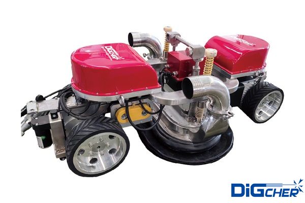 采用穩定可靠的立面吸附措施,氣動和電機驅動兩種形式可選的結構形式,機器人采用類似四驅越野車的底盤驅動方式,負載能力強,在垂直面及天花板面任意行走,并有一定的曲面通過能力。