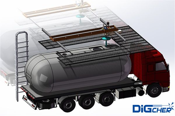 5、軌道式自動化清洗執行機構,在罐口封閉條件下完成對罐內的自動化清洗,清洗污水通過罐車排放口排入指定區域或通道;