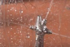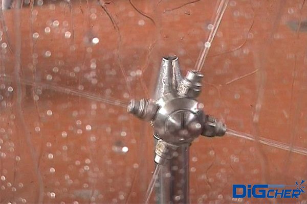 德高潔高壓水發酵罐自動清洗系統是利用高壓水射流的動能將發酵罐內壁表面上的堅硬垢物擊碎,從而剝離并清除掉。具體清洗流程是將特制的三維洗罐器伸縮機構安裝在發酵罐入口上,伸縮桿伸進罐內,伸縮桿在罐內伸縮和沿內壁周圍方向移動。當三維洗罐器水平旋轉時,水射流形成的旋轉力矩帶動噴嘴在垂直面內旋轉。由于三維旋轉噴頭與伸縮桿的復合運動,高壓水射流可以覆蓋發酵罐內任何位置,從而完成清洗。